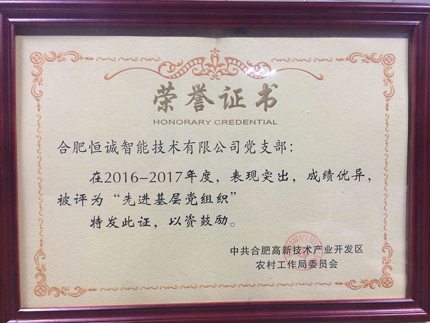 近日,高新區(qū)召開紀(jì)念建黨96周年大會(huì),合肥恒誠智能技術(shù)有限公司黨支部榮獲“先進(jìn)基層黨組織”稱號(hào)。